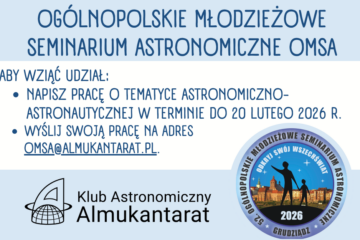 Klub Astronomiczny Almukantarat rozpisał w roku szkolnym 2025/2026 konkurs na referat z zakresu astronomii i astronautyki dla uczniów szkół średnich (dodatkowo dla zdolnych uczniów ostatniej klasy szkoły podstawowej) w województwie mazowieckim oraz organizuje Wojewódzkie Młodzieżowe Seminarium Astronomiczno-Astronautyczne dla laureatów konkursu. Jak Czytaj dalej…